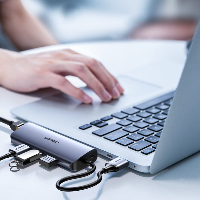 Czy możesz coś zrobić w takiej sytuacji? Oczywiście, sięgnij po HUB marki Ugreen. Z jego pomocą przekształcisz pojedynczy port USB Typ C Twojego komputera w 4 dodatkowe złącza!