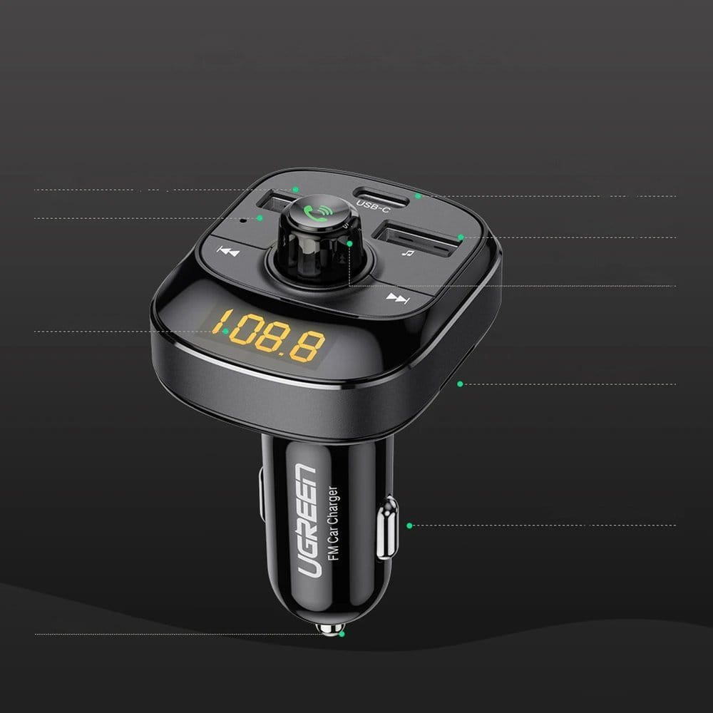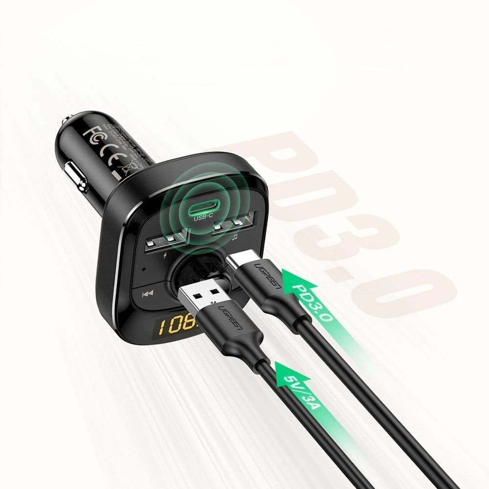 Ugreen Transmiter FM Bluetooth 5.0 ładowarka samochodowa MP3 3x USB TF micro SD 4,8 A