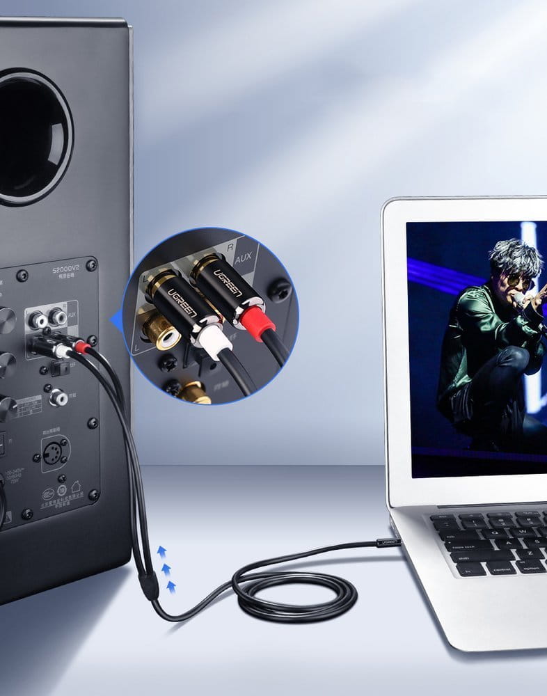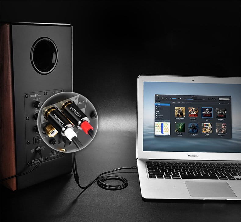 Kabel Ugreen daje Ci możliwość żeby podłączyć mobilne urządzenie do np. wzmacniacza lub do aktywnych głośników.