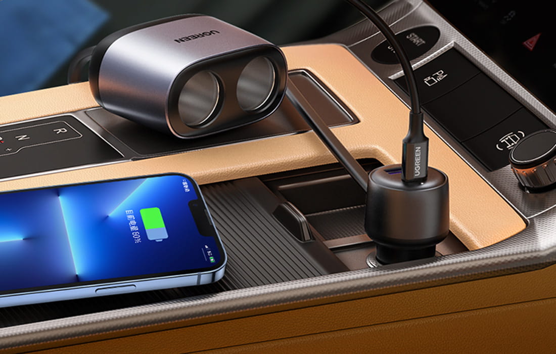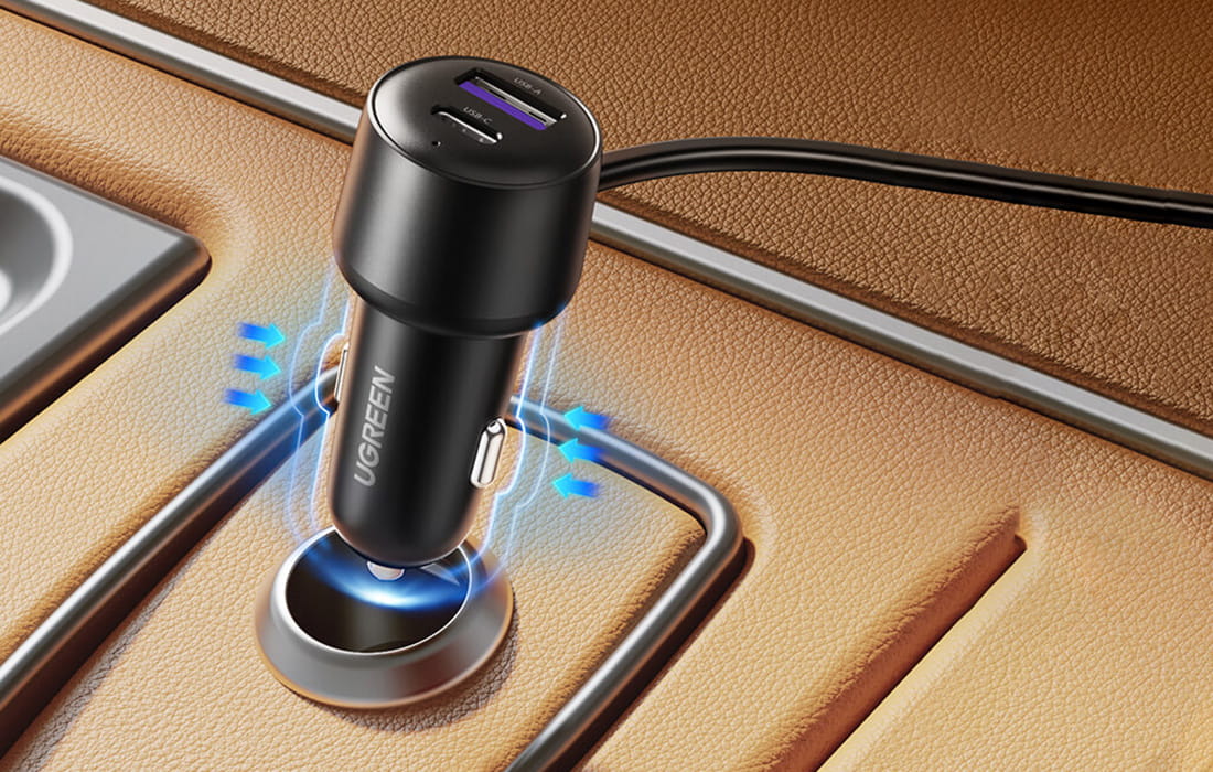 Teraz możesz wygodnie ładować swoje urządzenia podczas podróży. Ładowarka samochodowa UGREEN CD252 została wyposażona w 2 porty: USB-C i USB-A. Ma także dodatkowy rozdzielacz gniazda zapalniczki, który umożliwia podłączenie jeszcze większej liczby urządzeń. Obsługuje szybkie ładowanie i zapewnia bezpieczeństwo użytkowania. Teraz wszyscy pasażerowie mogą ładować swoje smartfony w tym samym czasie - nikt nie musi czekać na swoją kolej!