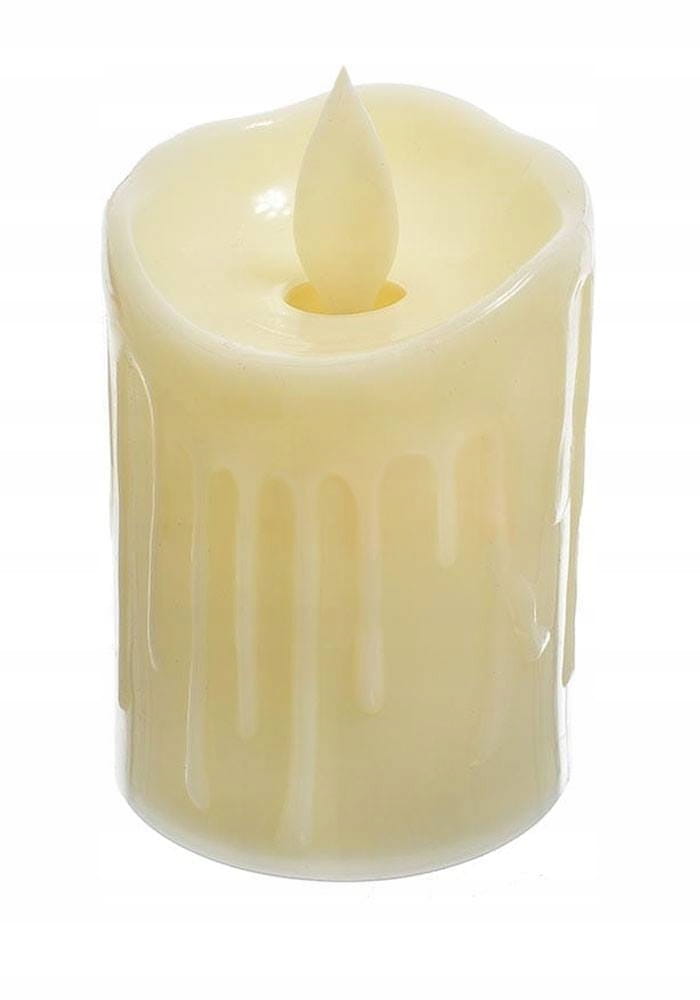 Świeczka jest ✅kremowa i po włączeniu, świeci światłem stałym na kolor ✅ciepły żółty.