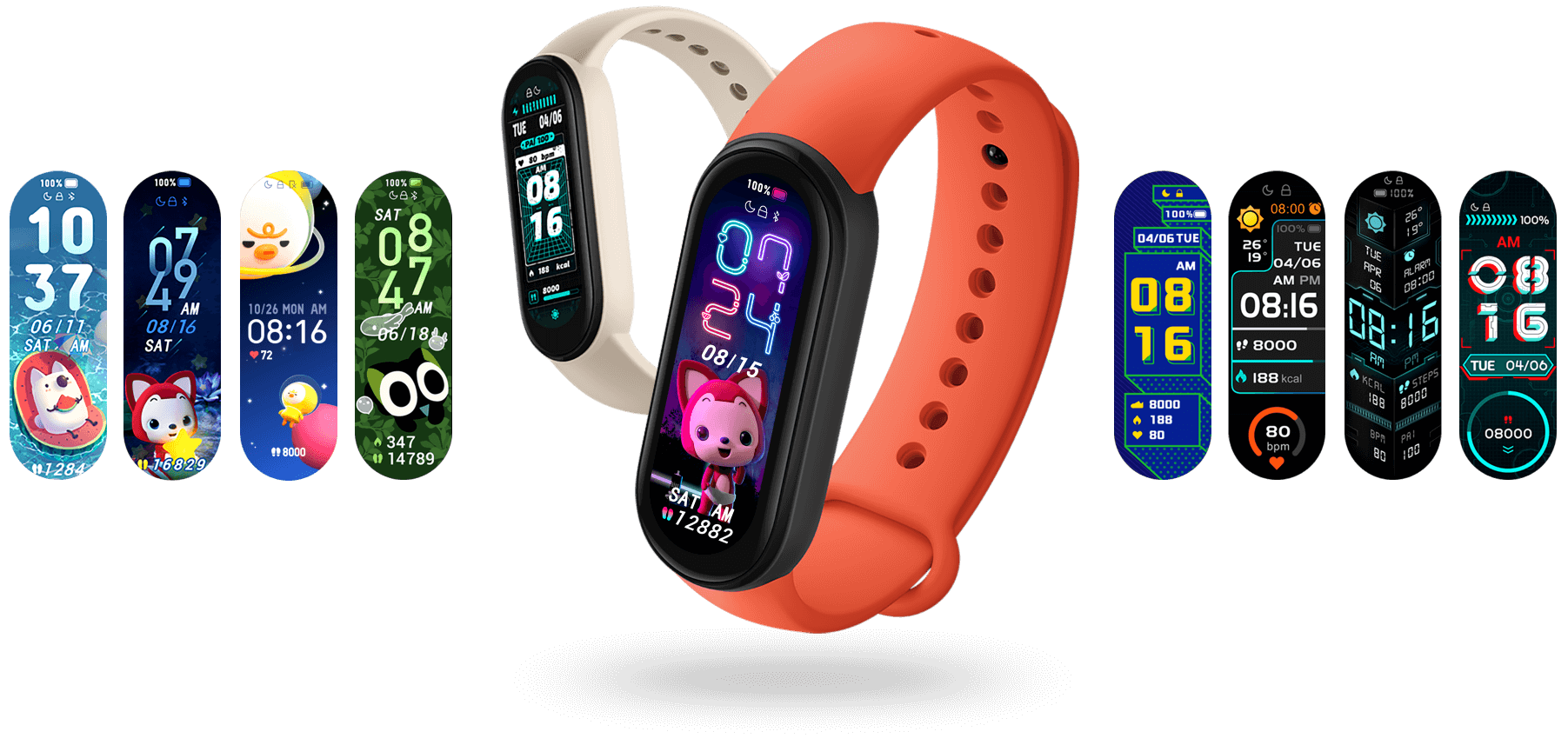 Na dużym wyświetlaczu AMOLED możesz ustawić dowolne zdjęcie lub obraz jako tło. W aplikacji znajdziesz ponad 60 opcji wyświetlania zaprojektowanych specjalnie dla trybu pełnoekranowego. Po raz pierwszy za pomocą dużego wyświetlacza AMOLED możesz ustawić tło na zdjęcie ukochanej osoby, zwierzaka lub ulubione dzieło sztuki, aby i za każdym razem, gdy podnosisz nadgarstek, dzień był jaśniejszy. Dostosuj wygląd swojego Mi Smart Band 6 za pomocą 6 dostępnych kolorów bransoletek. Twoje Mi to Twoje zasady.
