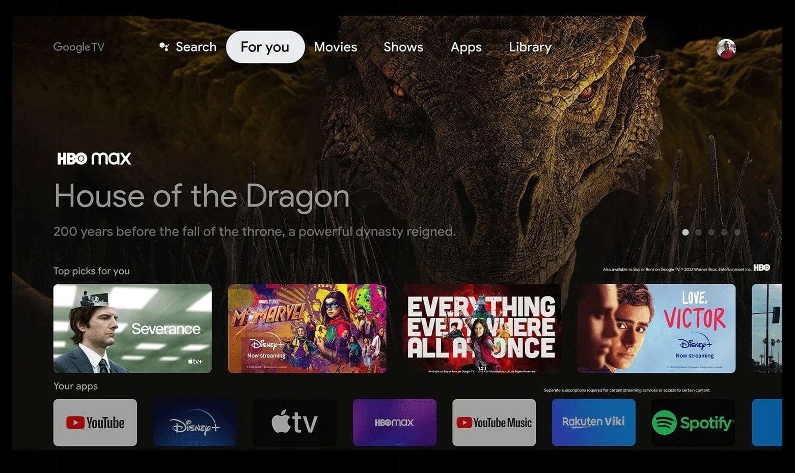 Funkcja Google TV łączy w sobie filmy, programy i wiele więcej z Twoich aplikacji i subskrypcji oraz organizuje je specjalnie dla Ciebie. Odkrywaj nowe rzeczy do oglądania na podstawie tego, co już widziałeś i co Cię interesuje ze wszystkich dostępnych dla Ciebie treści i subskrypcji.