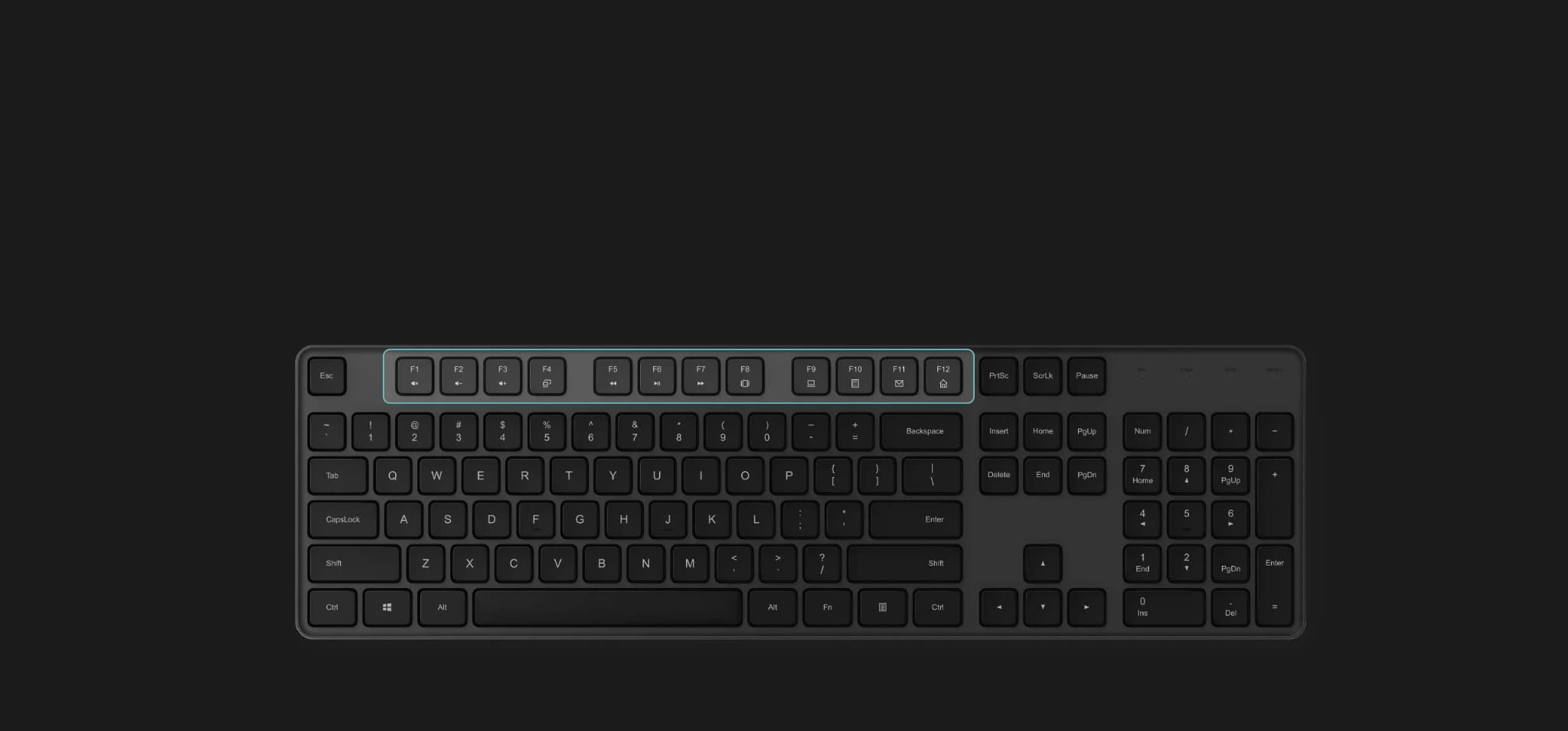 Przyciski funkcyjne umiejscowione w górnej części klawiatury pomogą Ci panować nad głośnością multimediów, pomijaniu ścieżek i innych funkcji komputera.