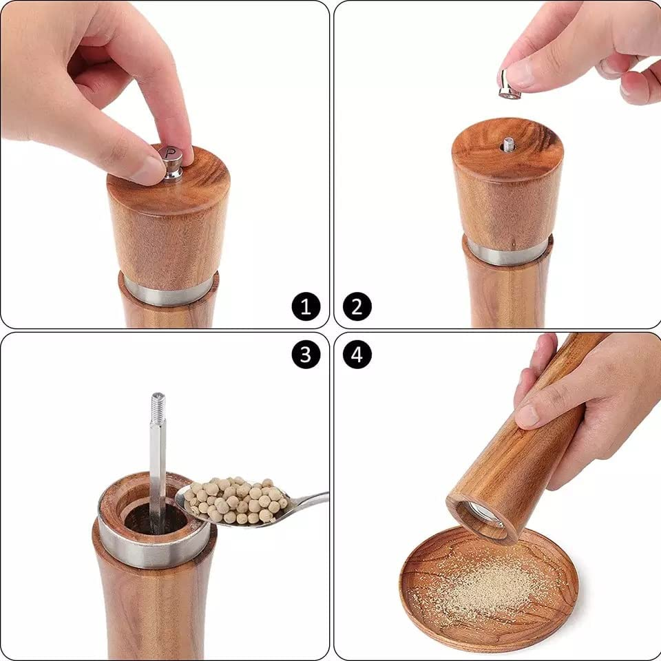Zestaw młynków ręcznych do soli i pieprzu posiada skuteczny i efektywny ręczny mechanizm rozdrabniający.