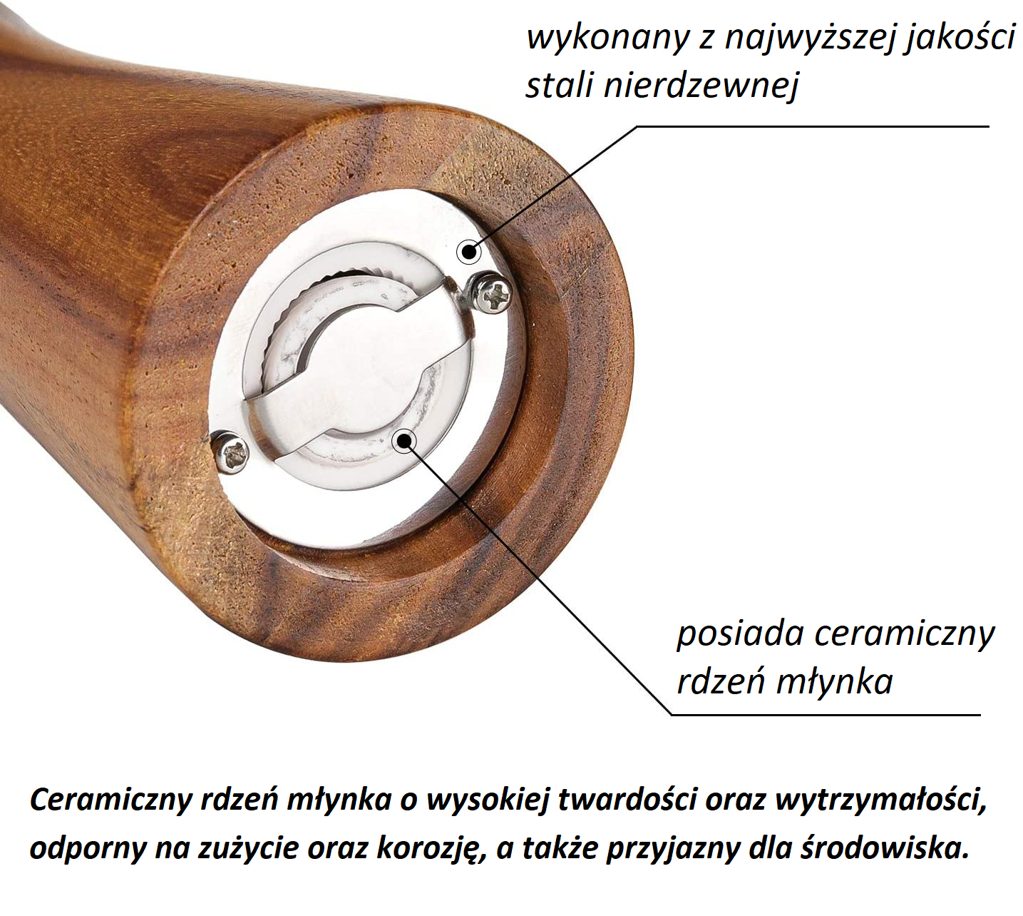 Młynki wykorzystują ceramiczne żarna. Gwarantuje to dokładność mielenia i sprawia, że na długo pozostaną w domowej kuchni. Gradację możesz regulować, zależnie od preferencji oraz rodzaju przygotowywanych potraw.