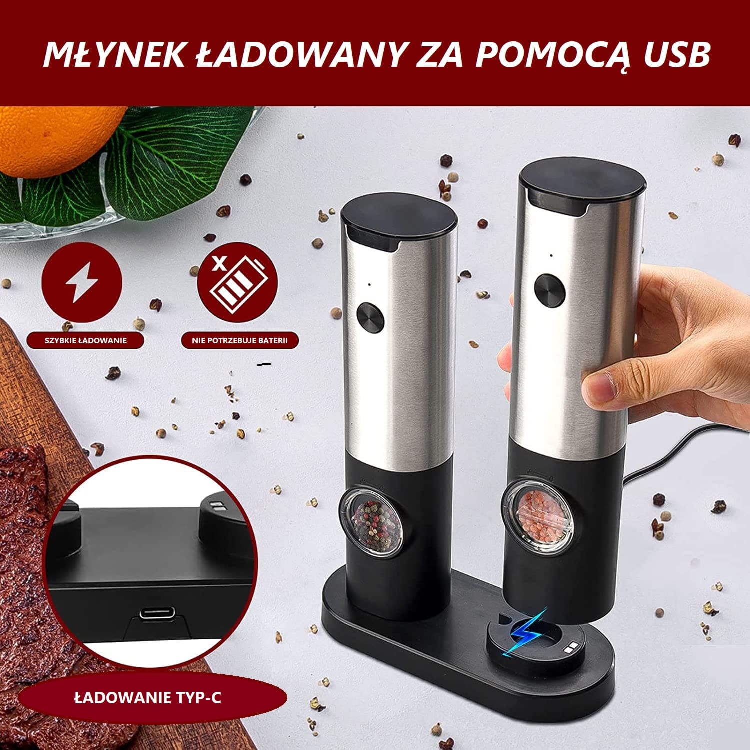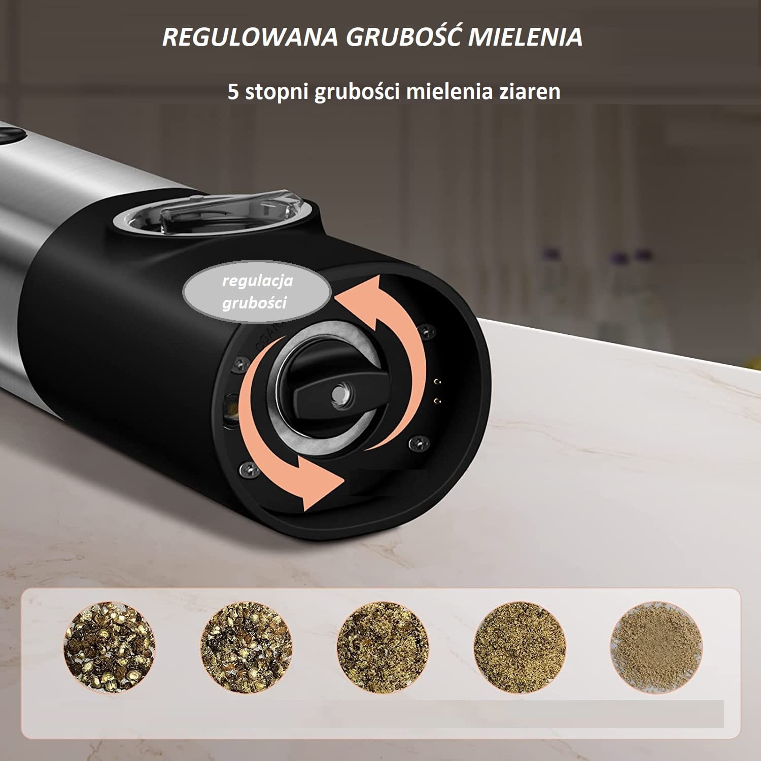 2x MŁYNEK ELEKTRYCZNY DO SOLI, PIEPRZU, PRZYPRAW