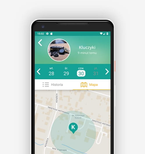 Informacja o lokalizacji notiOne przekazywana jest na Twój telefon i wyświetlana na mapie w aplikacji.